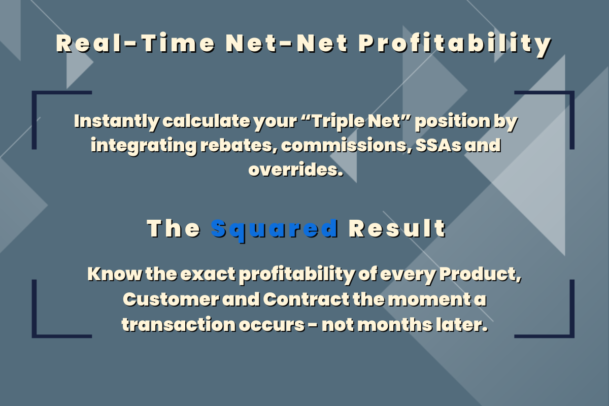 Stop guessing your margins. Squared integrates rebates, commissions, SSAs and more in real-time to reveal the absolute truth of your bottom line.